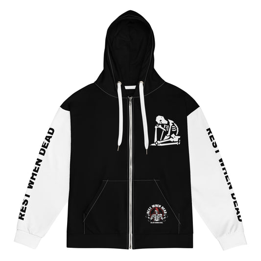 Rest When Dead - Zipped Hoodie - Black with White Sleeves
